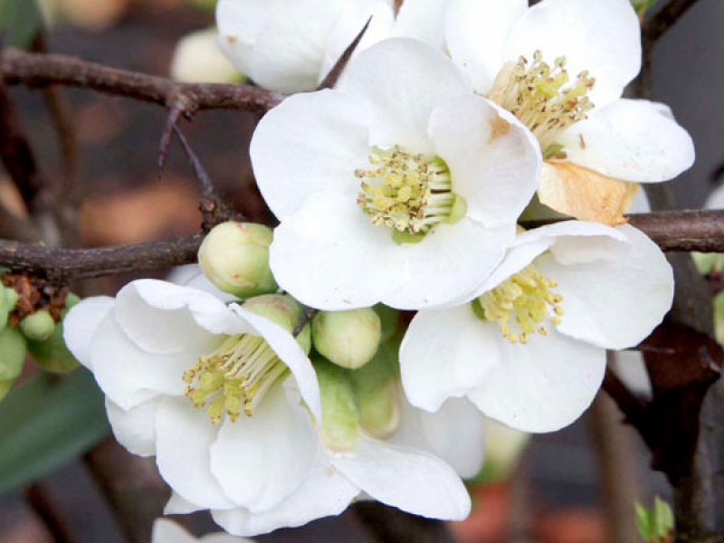 Саженцы айвы (хеномелес) прекрасной Нивалис (Nivalis) образуют среднерослый кустарник с колючками, который предпочитает солнечные места. Цветение обильное, приходится на май месяц. Ветви молодого растения вытягиваются вверх, а позднее крона становится более раскидистой. Цветет одиночными чисто-белыми цветочками.
