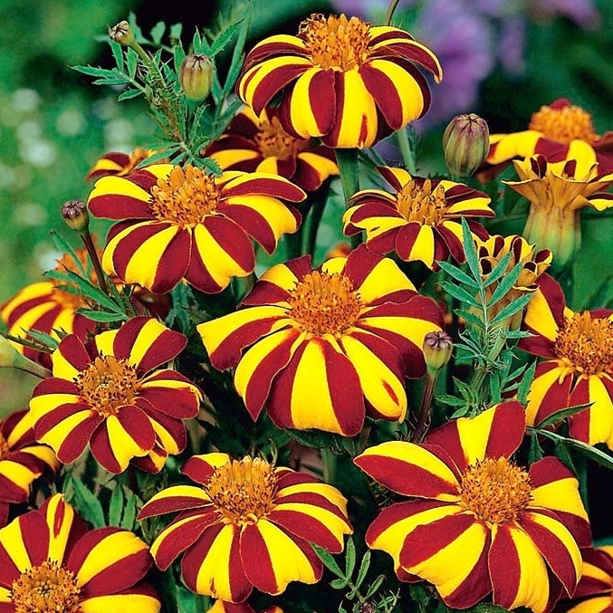 Семена бархатцы отклоненной Арлекин (Tagetes patula nana) необходимо сажать на солнечных участках или в полутени. В остальном, особых требований растение не предъявляет. Ему приемлема почва с любым составом. Данный вид хорошо развивается даже без специальных удобрений. Это отличный старт для новичков-садоводов. Соцветия бархатцев Арлекин имеют насыщенный красно-желтый окрас. А томный бархатный блеск придает цветочной композиции изысканности и романтичности. Подходит для высадки на клумбах и любых других садовых посадках. Неприхотливый Арлекин будет радовать глаз своим цветением с начала июня и до первых заморозков.