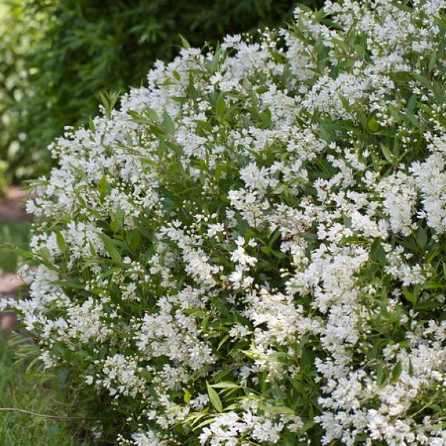 Саженцы дейции изящной Никко (Nikko) характеризуются длинными свисающими побегами, которые формируют элегантную и аккуратную крону. В мае и июне кустарник покрывается метельчатыми белоснежными соцветиями. В весенне-летний период листва имеет темно-зеленый оттенок, а к осени становится бордовой.