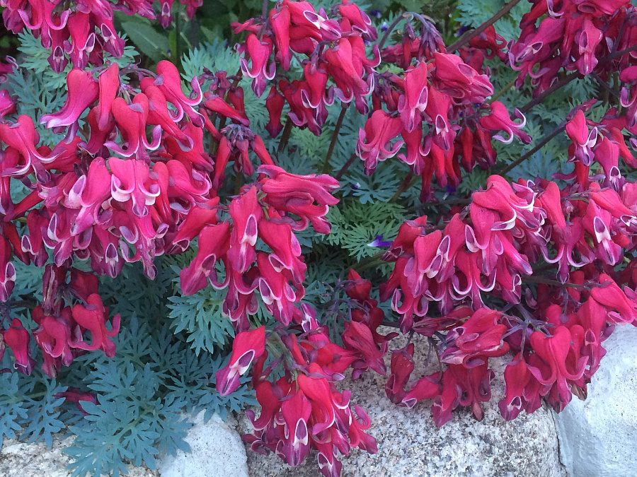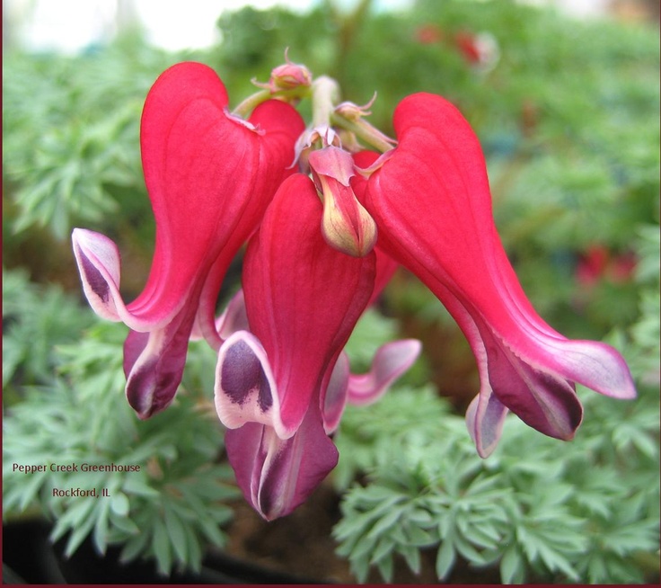 Рассада Дицентры исключительной Burning Hearts (Бернинг Хартс) обладает удивительными серебристо-голубыми ажурными папоротникообразными листьями. Один из самых среднерослых подвидов, формирует пышный куст высотой до 30 см. Причудливо раздвоенные сердцеобразные цветки рядками усеивают стебельковые дуги. Расцветка цветоноса ярко-алая, цветы окаймлены широкой белой полосой; цветение конец весны и часть лета - обильное при наличии осадков. Семена формируются в коробочках.