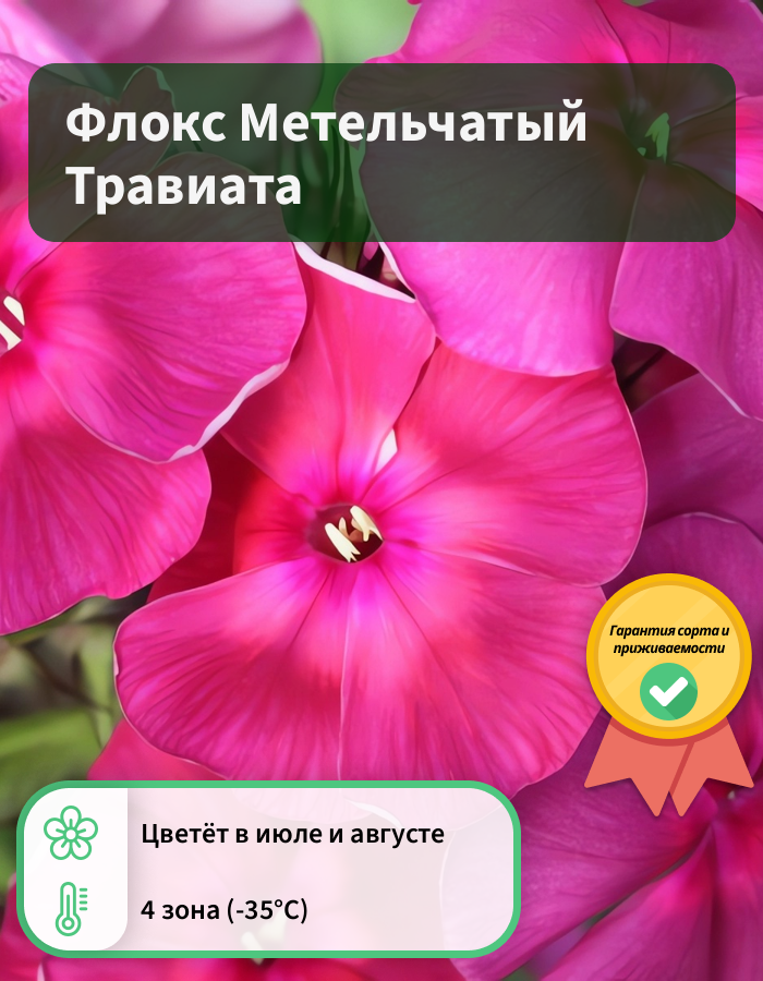 Рассада флокса метельчатого Травиата – отличный вариант для украшения сада и выращивания красивых соцветий для составления изящных букетов. Цветы имеют пурпурно-малиновый оттенок, слегка подернутый коричневой дымкой. Края лепестков волнистые, что придает им особое очарование. Выращивать рассаду флокса метельчатого Травиата несложно – необходимо регулярно ее поливать, не допуская переувлажнения. Растения солнцелюбивые, но также неплохо себя чувствуют в полутени. Их нужна защита от сильного ветра. На одном месте куст может оставаться около 5 лет, после чего следует его пересадить.
