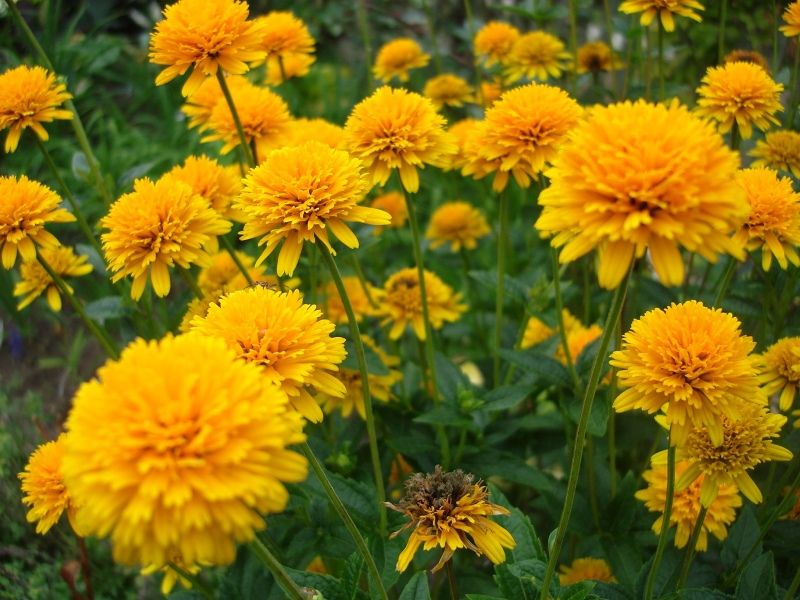 Саженцы Гелиопсиса подсолнечниковидного Асахи (Asahi Heliopsis helianthoides) помогут украсить любой участок, украсить зону вдоль заборов или стен. Данный сорт отличается небольшим ростом (до 60-80 сантиметров) и красивыми густомахровыми бутонами с чуть заметной серединкой или вовсе без нее. Цветы похожи на огненные шары, которые раскрываются в середине лета и продолжают цвести до конца сентября. Растение неприхотливое, предпочитает солнечные участки, не требовательно к поливу, прекрасно справляется с длительной засухой, лишь незначительно уменьшая размер и количество бутонов.