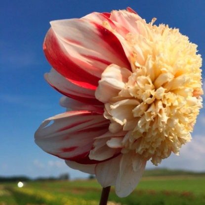 Окраска цветка : кремовый центр в обрамлении бело-красных лепестков