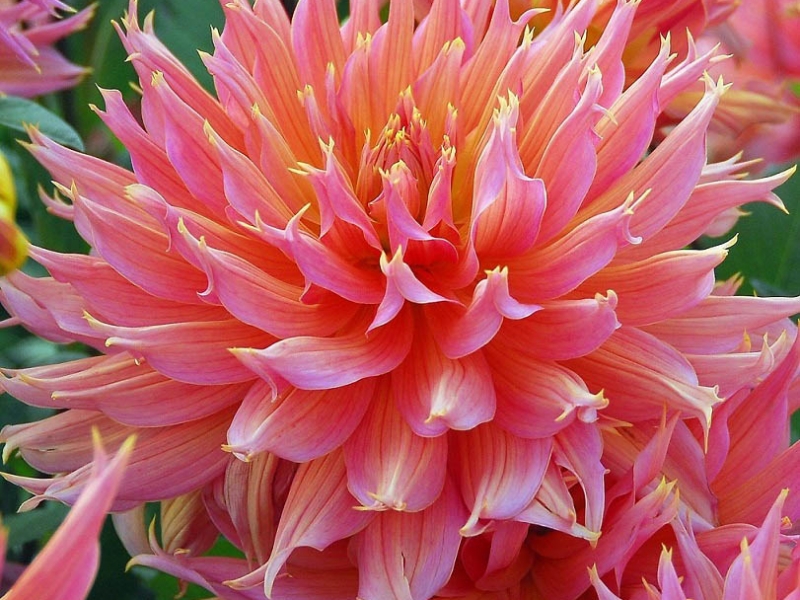 Луковицы георгины бахромчатой Омега (Dahlia Omega) выведены в Нидерландах в 2009 году. Сорт предназначен для оформления газонов и клумб. Растения гармонично смотрятся в групповых и одиночных посадках. Расти предпочитает на солнечных участках и плодородном грунте. Кусты высотой до 90 сантиметров. Период цветения длится с июля до октября до первых заморозков. Распустившиеся соцветия очень крупные, в диаметре около 20 сантиметров. Лепестки насыщенного оранжево-розового окраса.