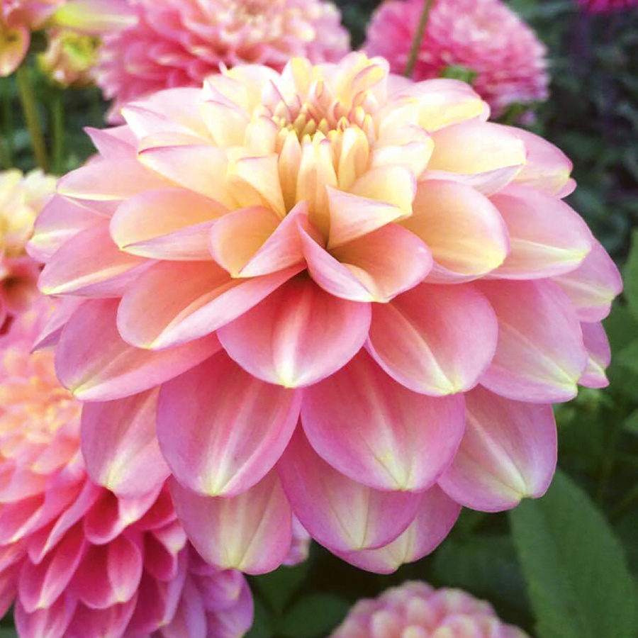 Георгина декоративная Милена Ф - это великолепное растение с изысканными цветками, которые словно озарены золотистым свечением. Ее розовые лепестки с золотисто-желтым штрихом создают неповторимый эффект, будто подсвеченные изнутри. Этот сорт георгины отличается высотой до 80 см и размером цветка 10 см, что делает его прекрасным украшением для газонов, групповых посадок или миксбордеров.
