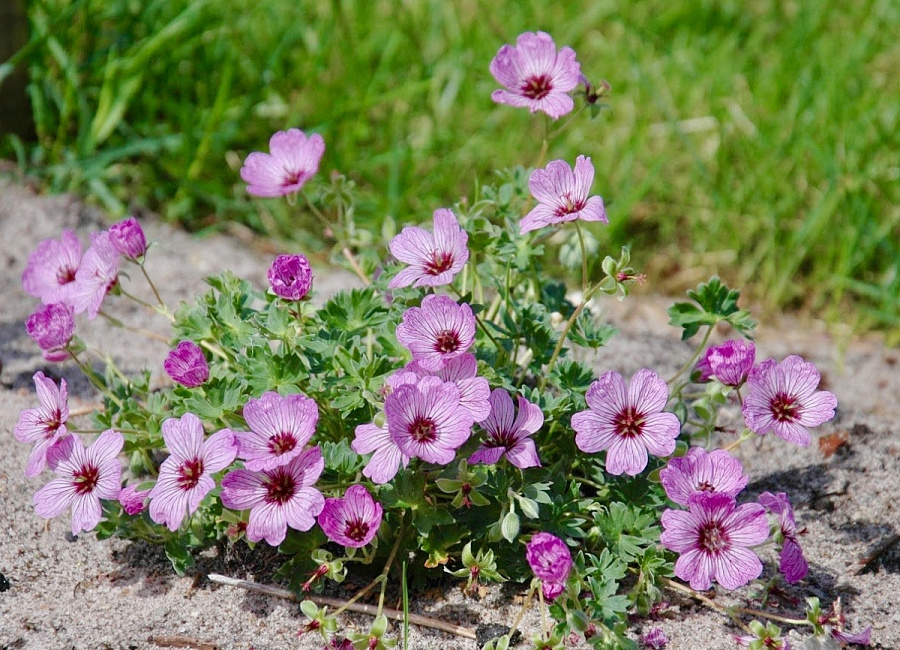 Рассада герани пепельной Ballerina (Балерина) - морозостойкий сорт, прекрасное украшение любого рокария. Кустик формируется изящный, не высокорослый (до 15 см) с декоративными листиками и нежными чашеподобными цветками диаметром до 3 см. Расцветка розовая (пепельно-розовой), с четкими лиловыми прожилками. Особенно эффектно смотрится в сочетании камешков и гальки. Цветет пышно и продолжительно, начиная с июля. Можно размножать семенами. Требования при посадке: