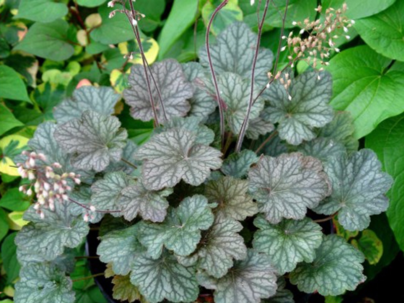 Рассада гейхеры Пино Нуар (Pinot Noir) украсит ваш сад невероятной темно-пурпурной листвой с легким серебристым налетом. Во второй половине лета и без того эффектный вид будет дополнен привлекательными бело-кремовыми цветочками. Этот сорт отлично подходит для формирования клумб, украшения мест отдыха и декорирования бордюров. Выбирая место для размещения рассады гейхеры Пино Нуар (Pinot Noir), лучше всего подобрать участок в полутени. Растение хорошо переносит прямые солнечные лучи, но в этом случае потребуется дополнительный полив. Для омоложения куста, его следует разделять и пересаживать раз в 3–4 года.