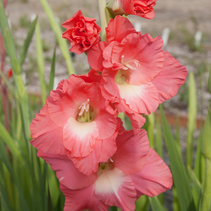 Луковицы гладиолуса гибридного Lolita используются цветоводами для создания красивых одиночных и групповых посадок, смешанных цветников, получения цветоносов на срез. Растения хорошо растут и цветут на любой достаточно дренированной почве со слабокислой реакцией. Места выбирают солнечные или частично освещенные, защищенные от ветров. Стебли вертикальные, прочные, высотой до 120-150 см. Период цветения наступает в конце июня. Цветы собираются в пышные соцветия. Окраска гладиолусов гибридных Lolita светло-розовая. В центре цветочка имеется белое пятнышко, которое эффектно переливается на солнце.