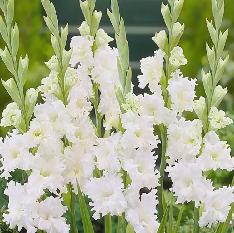 Гладиолус гофрированный сноуи раффл - это великолепное растение, которое поразит вас своей изысканной красотой. Его стебель высотой от 80 до 110 см украшен нежными белоснежными цветками, создающими впечатление пушистых облаков. Листья гладиолуса имеют элегантную форму и придают растению особый шарм.