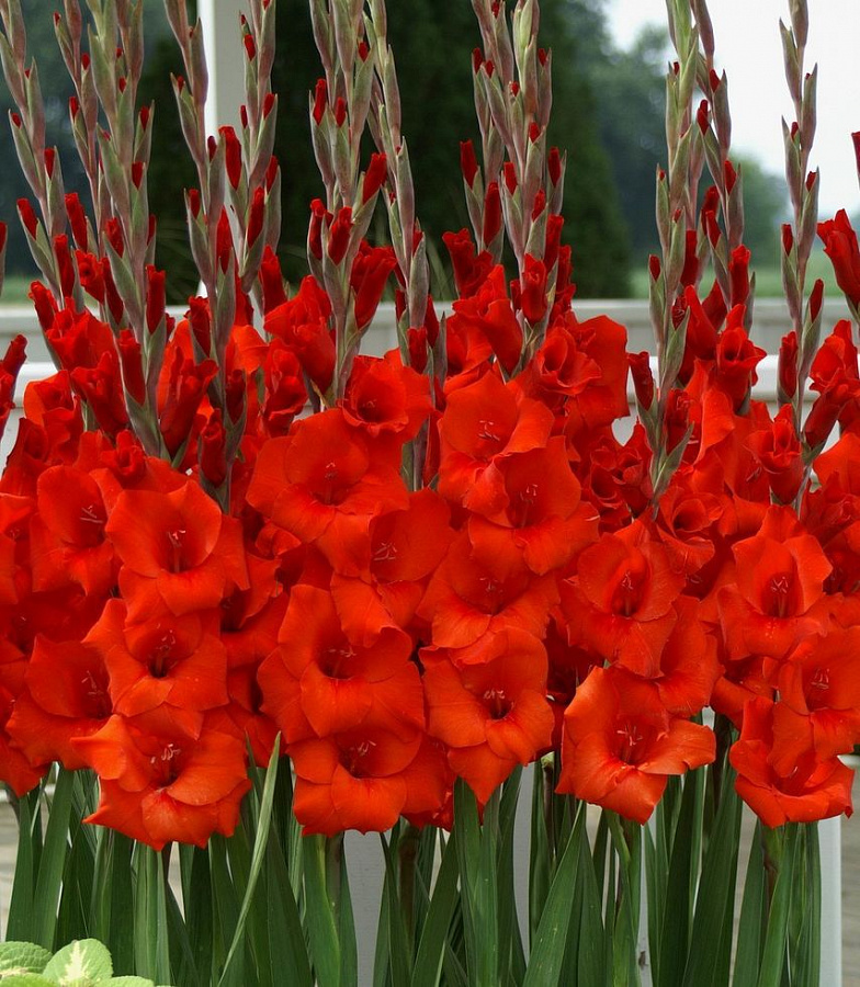 Луковицы гладиолуса гибридного крупноцветкового Масканьи (Mascagni) принадлежат к группе ярко окрашенных сортов. Если вы мечтаете разжечь костер на клумбе, акцентировать основное внимание на цветнике – сорт Масканьи выполнит эту задачу. Для большего эффекта несколько экземпляров растения высаживают в круг в непосредственной близости друг от друга.