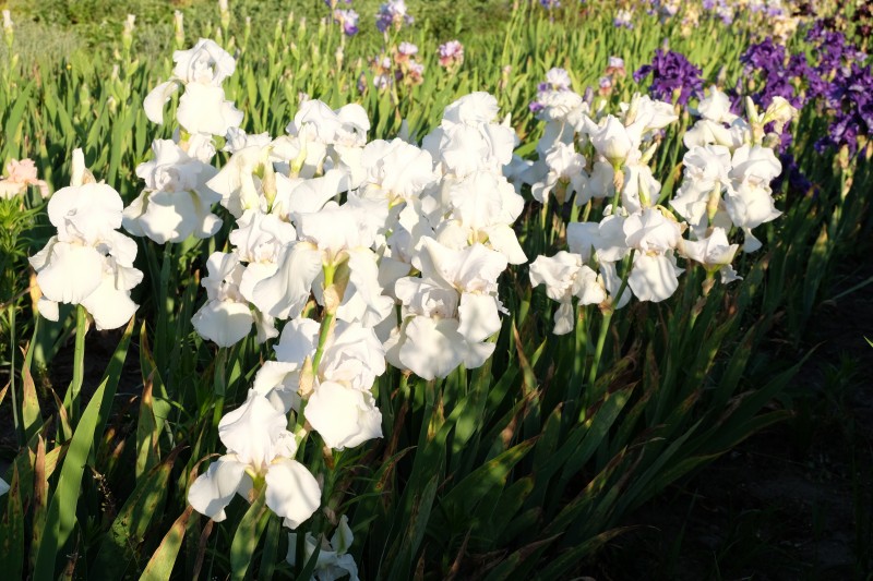 Рассада ириса германского Cliffs of dover порадует садоводов изящными соцветиями сложной формы. В мае на кустах высотой до 100 сантиметров распускаются цветы с белоснежными лепестками и золотистой серединкой. Цветы на длинных стеблях можно срезать для составления роскошных букетов. Ирис германский Cliffs of dover предпочитает солнечные участки, при помещении в тень растение может перестать цвести, потеряв декоративность. Почва должна быть удобрена минеральными веществами, навоз и другую органику использовать нельзя. Кусты не переносят переувлажнения, это может стать причиной заболеваний и последующей гибели корневой системы.