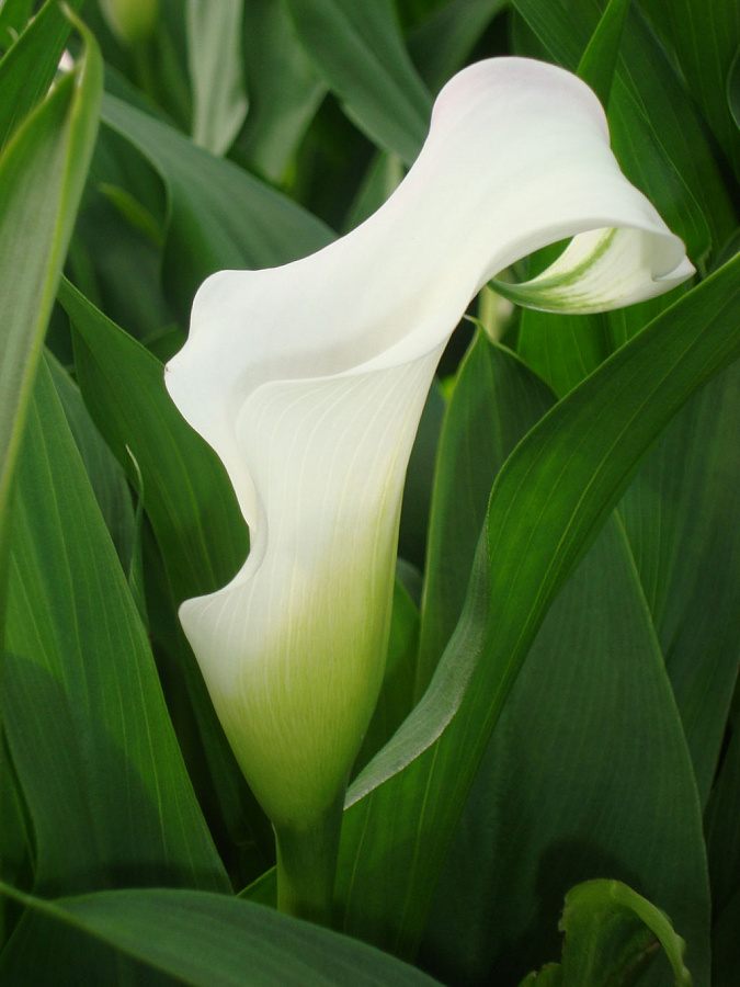 Классическая форма этого цветка ослепительного белого цвета покорит любителей садовых растений. Высота каллы Кристал Бьюти (Calla Crystal Beauty) достигает 60 сантиметров, а размер самого цветка до 12 сантиметров. Свою удивительно чистоту и декоративность растение способно сохранять до полутора месяцев. Предпочитает расти на слегка затемненных местах, не любит застойные почвы. Листья темные, восковые, покрыты крупным крапом. Отлично смотрятся в срезке, широко используется для оформления букетов. Начинает цвести в конце июня, обильно дает цветы до конца сентября. Очень декоративное и популярное растение.