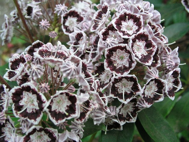 Кальмия широколистная блэк лейбл - это великолепное растение с уникальными черно-белыми цветками, которые привлекают внимание своей необычной окраской. Этот сорт отличается высотой до 130 см и ярко-зеленой весенней окраской листвы. Листья имеют форму, напоминающую 45 пальцев, что создает эффектный вид. Кальмия блэк лейбл предпочитает солнечные и полутенистые места для посадки, а также кислые почвы.