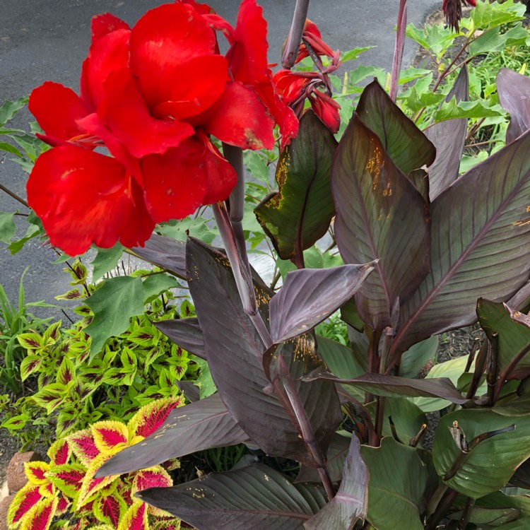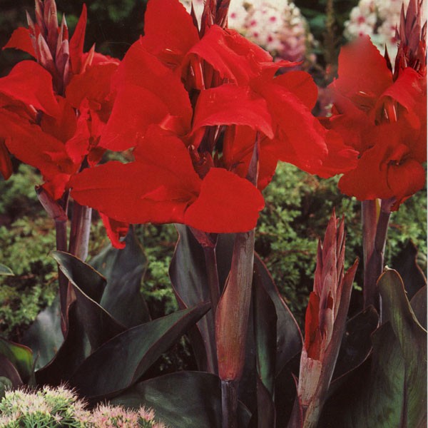 Канна коричневолистная Red King Humbert - это удивительное растение, которое поразит вас своей красотой и изысканностью. Ее стебли достигают высоты 90-110 см, создавая великолепный акцент в вашем саду или огороде. Цветки красно-желтые, а листва весной, летом и осенью имеет бронзово-коричневую окраску, что придает растению особый шарм и привлекательность.