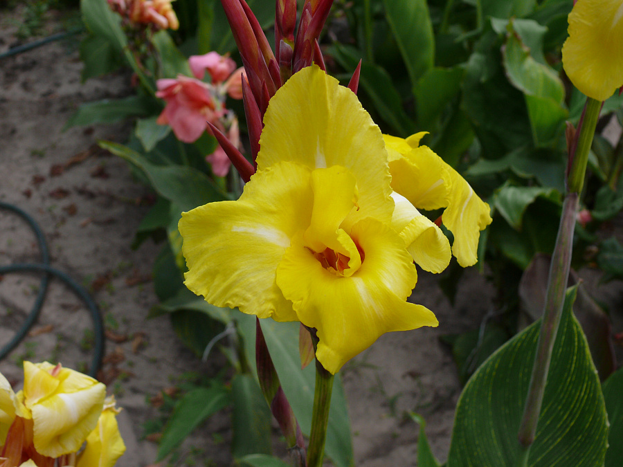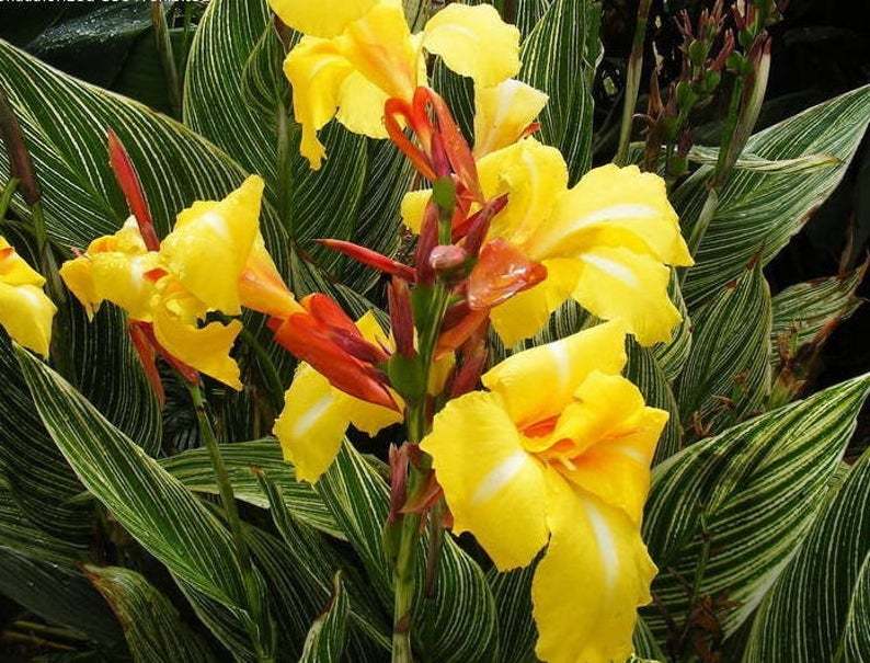 Канна пёстролистная страйпт бьюти - это удивительное растение, которое поразит вас своей красотой и изяществом. Ее стебель травянистый, достигает высоты до 100 см, а листья имеют зеленую окраску с белыми прожилками, создавая неповторимый рисунок. В мае цветет ярко-желтыми цветками с белым лучом по центру лепестка, что придает растению особый шарм.