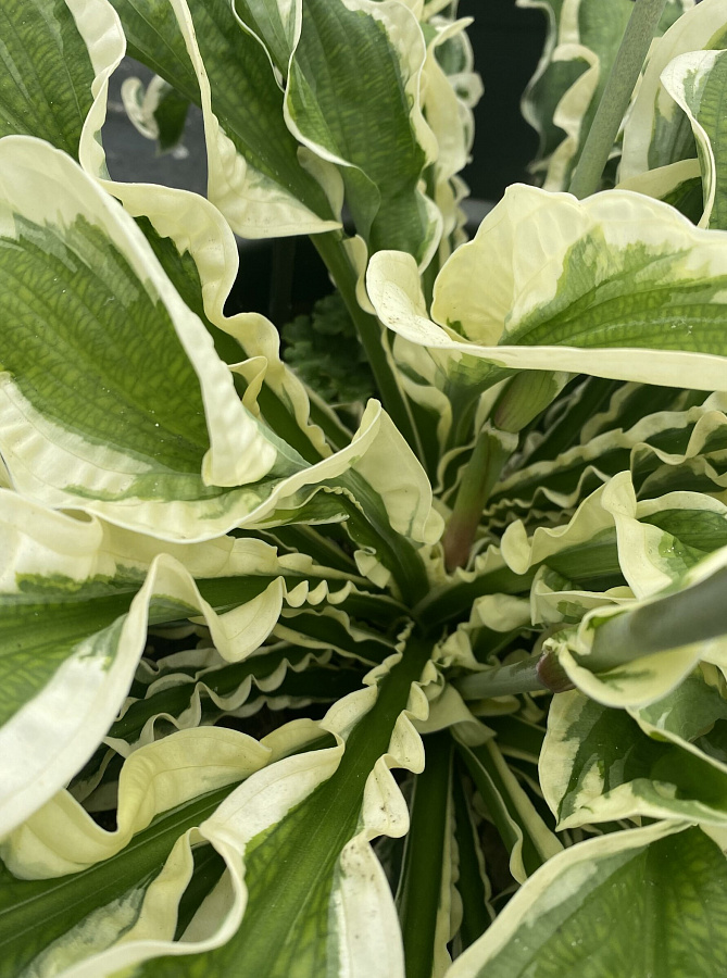 Хосты гибридной Let's Twist Again (Летс Твист Эгейн) это невероятный, очень привлекательный и необычный вид, особенно весной. Представляет собой хосту небольшого размера с темно - зеленые листья с кремово-белыми краями, добавьте к этому волнистую, скрученную форму листьев, и у вас получится уникальное растение, которое захотят увидеть ваши соседи. Цветет лавандовым цветом с июля по август. Характерные особенности растения: