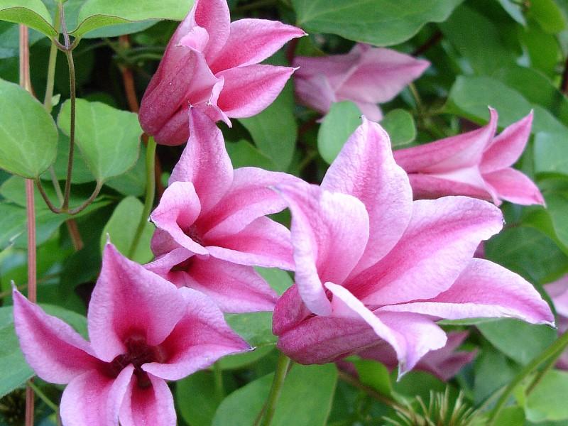Саженцы Клематиса гибридного Duchess of Albany (Clematis) отличается своей тепло- и светолюбивостью. Высаживают в плодородную землю на хорошо освещенное, защищенное от ветров место. В высоту достигает 3 метров. Цветет Дачесс оф Албани с июля по сентябрь розовыми с темной полоской цветками. Соцветия достигают в диаметре 8 сантиметров и напоминают по форме тюльпаны. Данный сорт клематиса отлично подойдет для групповой и одиночной посадки. Шикарно сочетается с другими сортами лиан, карликовыми деревьями и кустарниками.