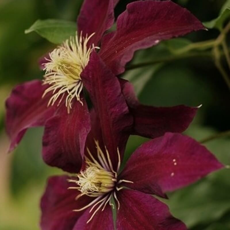 Клематис гибридный Гизела (Gizela) зацветает в середине июля, бархатными, темно-бордовыми цветками с ярко-желтой серединкой, отцветает в сентябре. Цветение обильное. Растение высокорослые, длина побегов достигает 300 см, поэтому при выращивании необходима опора. В качестве опоры используют различные садовые постройки и конструкции, например ограждения, арки, беседки или деревья и кустарники, не требующие ежегодной сильной обрезки.