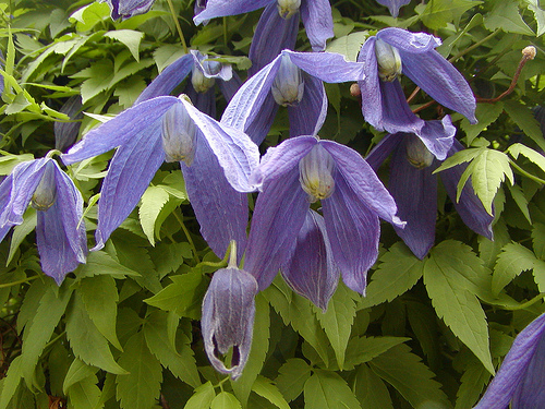 Лучшим место для посадки саженцев клематиса гибридного Памела Джекман (Pamela jackman) считается солнечный, защищенный от ветров участок с рыхлой, дренированной почвой. Цветение раннее и обильное, длиться с конца апреля по июнь, и повторяется в июле-августе. Цветки колокольчикообразные, ярко-голубого окраса, 6-8 см в диаметре. Клематис гибридный Памела Джекман (Pamela jackman) подходит для выращивания у ограждений, стен, камней и старых стволов. В ландшафтных композициях чудесно сочетается с хвойными и лиственными деревьями. При отсутствии опоры, побеги стелются по поверхности почвы.