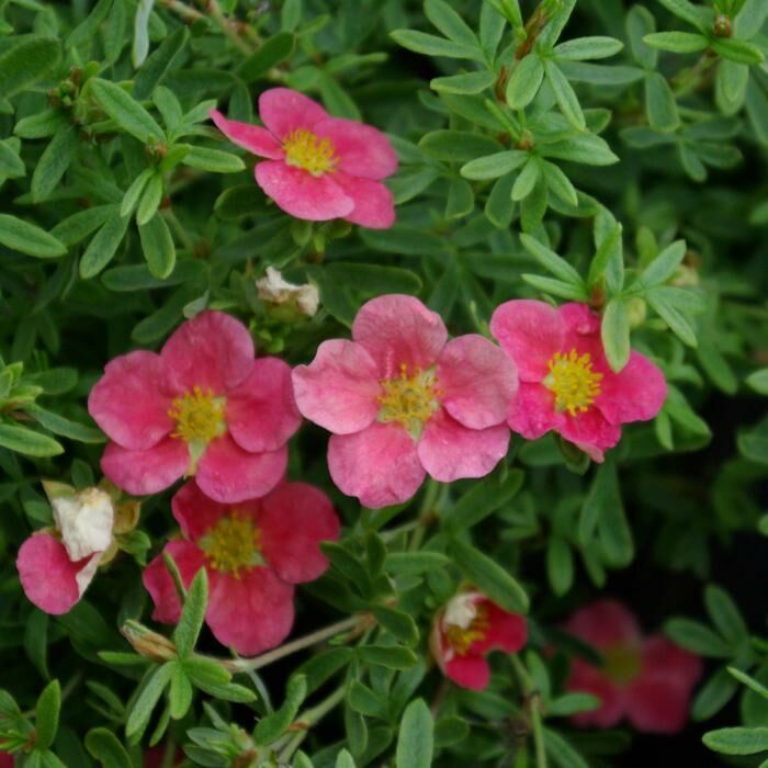 Саженцы Лапчатки кустарниковой Дэнни Бой (Danny Boy) густо-ветвящийся кустарник, в высоту не превышающий 80 сантиметров, а вот крона достигает 150 сантиметров. Лист визуально напоминает лапку и состоит из нескольких мелких листочков светло-зеленого цвета. Цветы ярко-малинового оттенка, растут в большом количестве и на протяжении всего лета. Лапчатка кустарниковой Дэнни Бой – светлолюбивое растение, но высаживать его на открытых солнечных лучах все, же не стоит. Почва требуется плодородная, дренированная, но в целом куст не сильно капризен к условиям посадки. Стоит отметить и его морозоустойчивость.