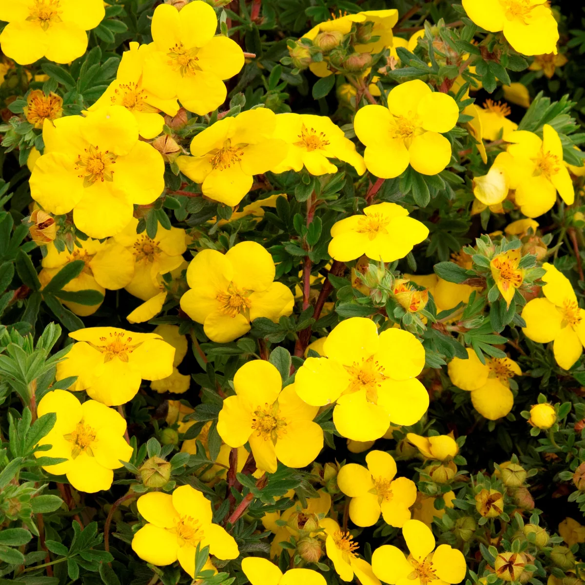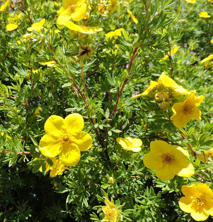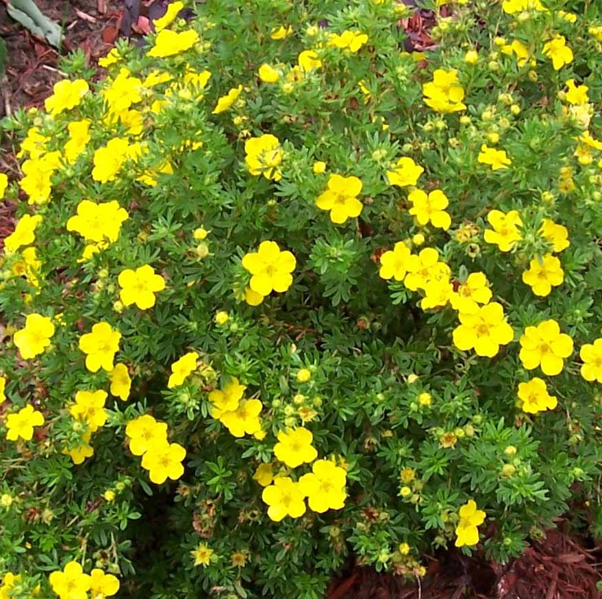 - на открытое освещенное место. Уход заключается в обрезке, рыхлении и мульчировании почвы, внесении комплексных удобрений. Растения редко поражаются болезнями и вредителями, устойчивы к засухе. Полив осуществляется только в жаркое лето. Кустарник достигает до 1 м в высоту, обладает крупными золотисто-желтыми цветами.