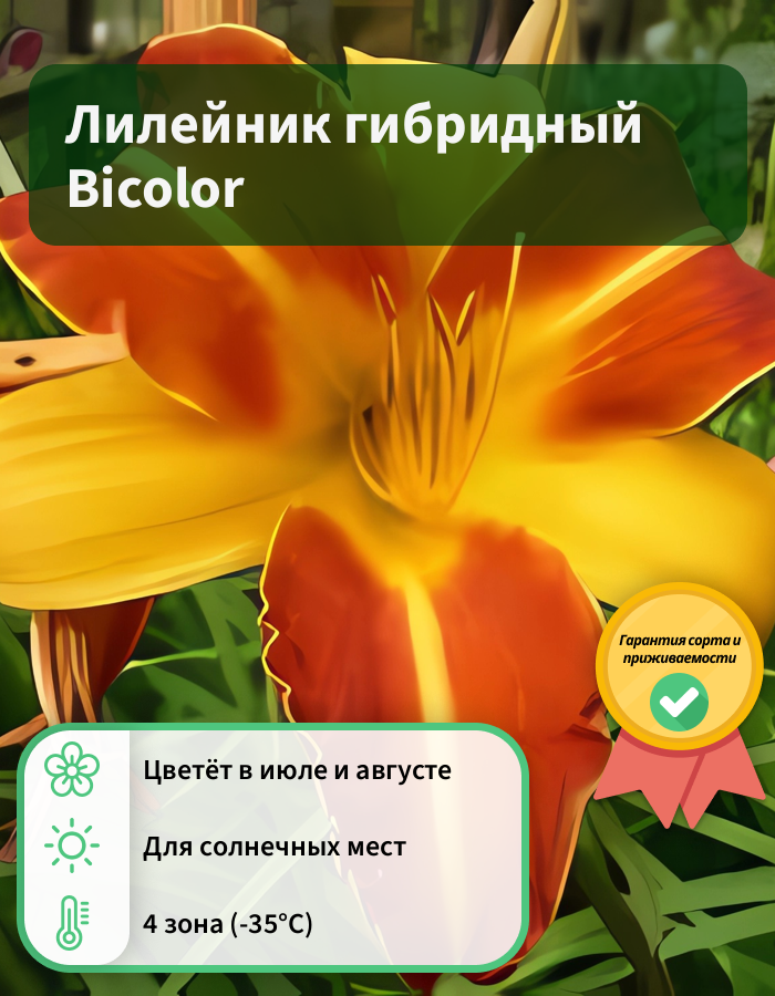 Приобретите лилейник гибридный bicolor и добавьте неповторимый шарм и изысканность в ваш сад. Позвольте этому растению раскрыть свою красоту и удивить вас своими яркими цветами. Создайте уголок гармонии и красоты с помощью этого удивительного растения!