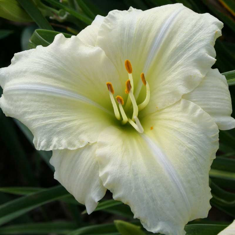Рассада лилейника Джоан Сеньор (Joan Senior) – редкий сорт с ремневидными листьями темно-зеленого цвета. Цветы растения белые, лепестки текстурные широкие с лимонной сердцевиной, они отогнуты наружу. На лепестках образуются прожилки почти такого же цвета, как и сам цветок, лишь слегка выделяясь. Стрелки на внутренних лепестках выражены менее сильно. Цветы появляются в период с июля по август. Рассада Джоан Сеньор хорошо подойдет для оформления групповых посадок и ландшафта на берегу водоемов. Также она отлично дополняет хосты, ирисы. Эти лилейники обязательно должны расти на хорошо освещенном участке, на ровной местности или на склонах, где не скапливается вода. Растение хорошо перенесет зиму под толщей снега, поэтому совсем не нуждается в дополнительном укрытии.