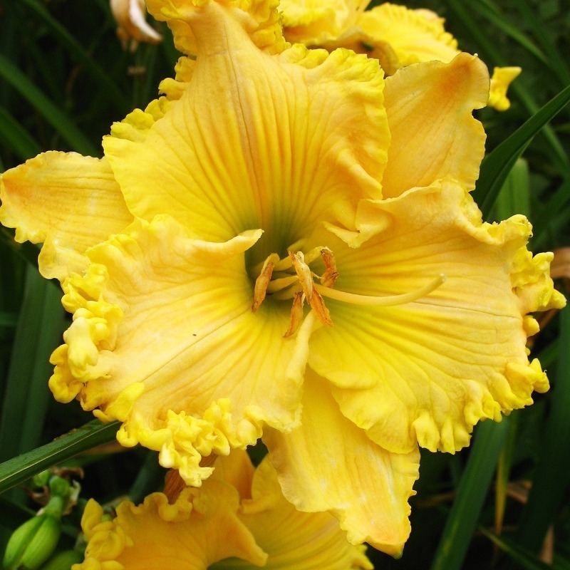 Саженцы и рассада Лилейника гибридного Гел Скаут (Hemerocallis) подойдут для украшения сада в традиционном или восточном стиле. Цветы этого сорта ярко-желтые, напоминают соцветие лилии. Их лепестки удлиненные и закругленные на краях, однотонные, обрамлены бархатной гофрировкой.