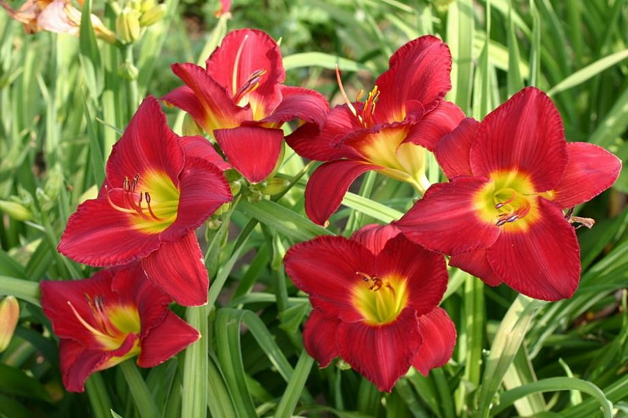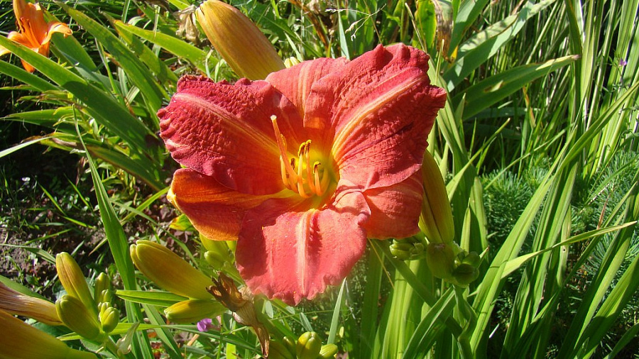 Рассада лилейника Ред Рам (Red Rum) отличается продолжительным цветением, что особенно ценится в многолетних цветах. Куст образуется достаточно широкий с несколькими невысокими цветоносами. Такой сорт прекрасно будет смотреться в небольших цветниках в качестве монокомпонента или в сочетании с другими цветами. Распустившийся бутон имеет кораллово-красный оттенок с более светлой линией по середине каждого лепестка, и абрикосово-желтое горлышко. Корни могут выдерживать достаточно сильные морозы без дополнительных укрытий грунта. Семена лилейника Ред Рам прекрасно сохраняются в течение зимы.