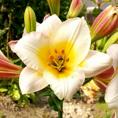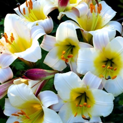 Лилия трубчатая вайт планет - это изысканное растение с белоснежными цветками, украшенными зеленцой у основания. Ее стебель достигает высоты до 130 см, а размер цветка может достигать 15 см. Лилия трубчатая вайт планет обладает красивой зеленой листвой и направленными вверх цветками, которые создают неповторимый вид в любом саду.