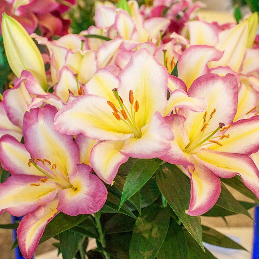 Луковицы лилии восточной Примроуз Хилл (Lilium hybrid oriental Primrose Hill) порадуют любителей нежных оттенков. Очень крупные белоснежные цветки диаметром до 25 см украшены в центре светло-желтым размытым мазком, а по волнистому краю – светло-розовым кантом. Время цветения – конец июня – август. Высота многолетника варьируется от 90 до 110 см. Используют лилию восточную Примроуз Хилл в миксбордерах, групповых посадках, для выращивания на срез. Растение неприхотливо. Для обильного и регулярного цветения достаточно посадить луковицы в подходящем месте: на хорошо освещенных участках с легкой полутенью, защищенных от ветров, с питательной, дренированной почвой.