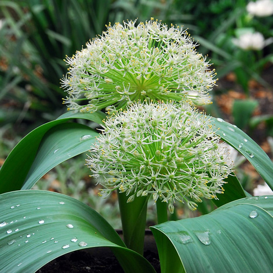 Луковицы лука декоративного гигантского Айвори квин (Allium, Лук Ivory Queen) относятся к компактным сортам, высота взрослого растение не превышает 15-25 сантиметров. Культура формирует большой шар, усеянный нежными белыми мелкими цветочками. Цветение радует около месяца, распускается в мае. Используется в одиночных посадках, для украшения газонов, патио, миксбордеров, альпинариев. Крупное растение на коротких цветоносах подходит для выращивания в контейнерах. Важно правильно выбрать место для посадки, с достаточным количеством солнечного света и умеренным поливом.