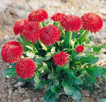 Маргаритка помпонная red - это удивительное растение, которое поразит вас своей красотой и изяществом. Ее стебель прочный и прямой, достигает высоты до 15 см, а диаметр цветка составляет 2,5 см. Листья маргаритки помпонной red имеют форму ланцета и создают нежный контраст с яркими красными цветками.