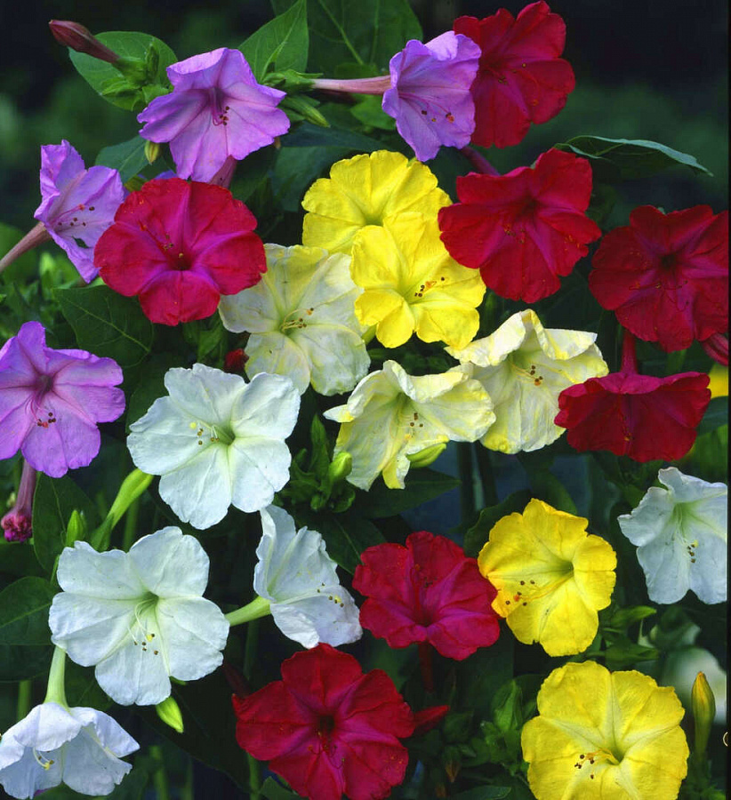 - белоснежные и прочие. Для посадки семян мирабилиса (Ночная красавица) следует подобрать солнечный участок глинистой почвы. Яркие цветы будут радовать садоводов с июня до начала осенних заморозков.