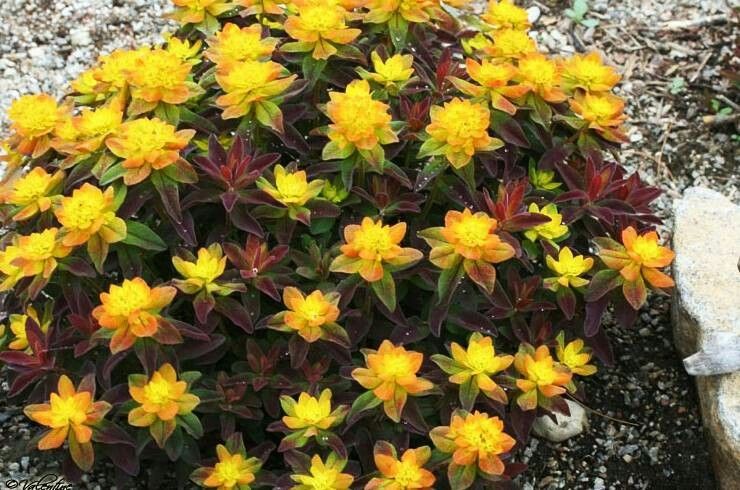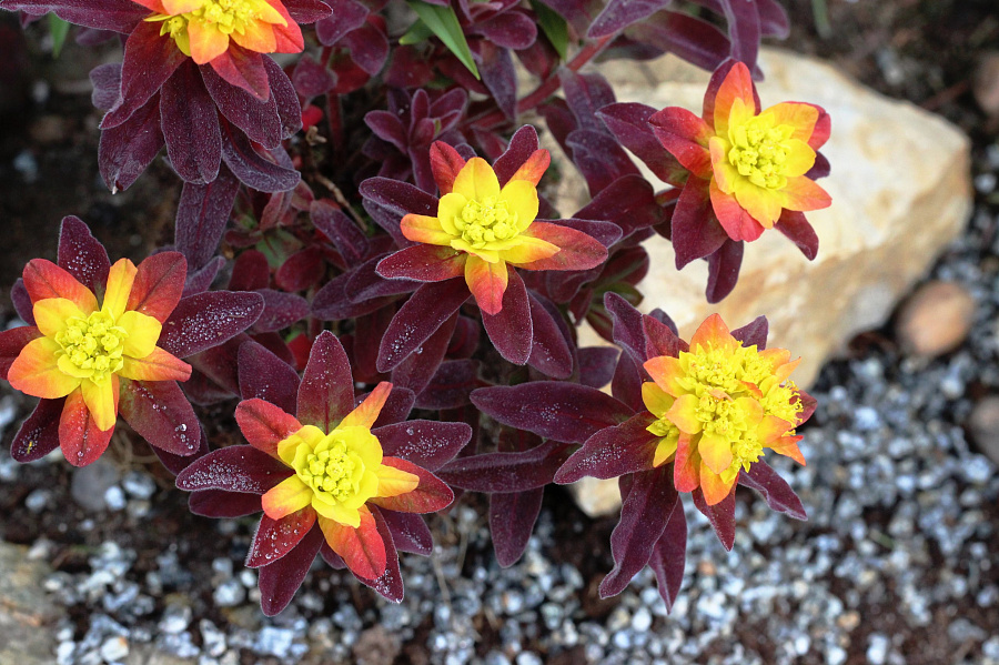 Рассада молочая "Бонфайр" (Bonfire) хорошо растет на открытых или полузатененных местах. Не переносит тяжелых и влажных почв. Лучше высаживать рассаду молочая "Бонфайр" на легких и питательных почвах. Растение с простым, прямостоячим стеблем 50 - 70 см высотой. Прикорневые листья чешуевидные, стеблевые - округлые или продолговатые. Листочки-покрывальца светло-желтые, в период цветения - оранжевые. Цветет в мае 30 - 35 дней. Кусты сохраняют форму и декоративность до осени, лишь в октябре листья желтеют и опадают.