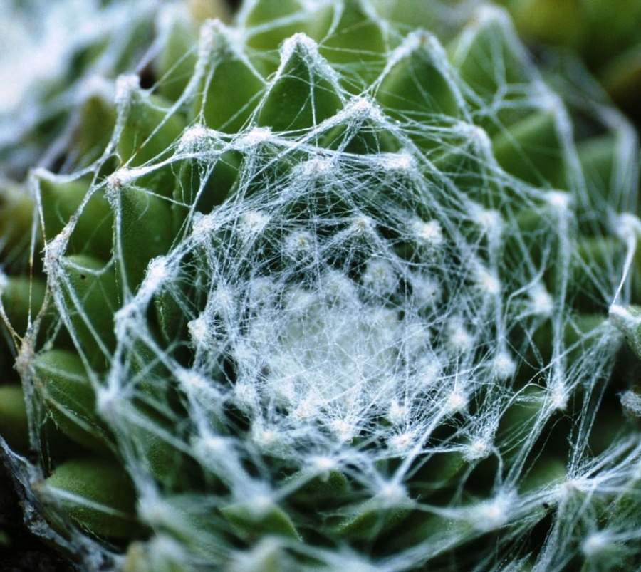 Саженцы молодила паутинистого кровельного (Sempervivum arachnoideum) высаживают на небольшом расстоянии друг от друга. Растение любит солнечный свет, переносит засуху и полутень, но не выдерживает застоя влаги. Формирует многочисленные розетки из мясистых зеленых листьев. Расцветает в середине июня и радует цветением до конца августа. Цветы звездообразные, собранные в небольшие соцветия розового оттенка. Декоративный многолетник используется для озеленения газонов, миксбордеров, каменистых горок. Эффектно смотрится в одиночных и групповых посадках с другими культурами.