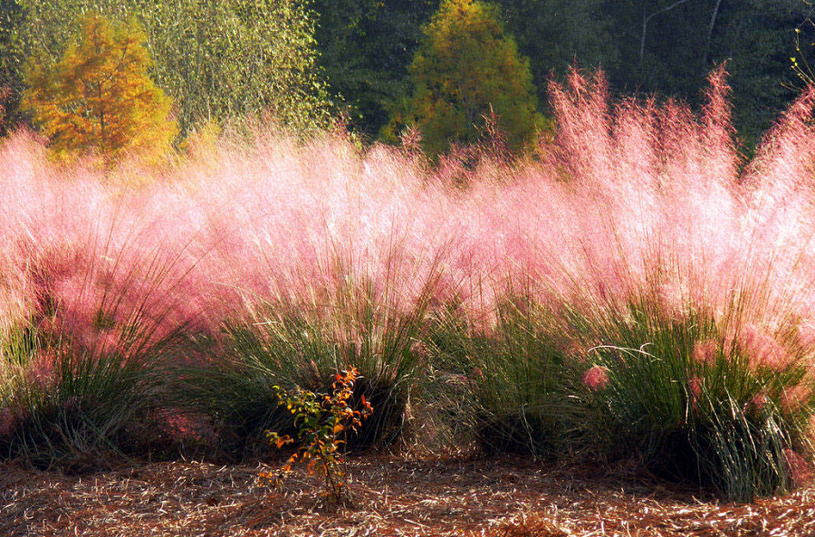 Рассада мюленбергии волосовидной отлично разрастается на солнечных или частично притененных участках. Растение неприхотливо, засухоустойчиво, в дополнительном поливе не нуждается. Хорошо переносит разнообразные почвы: от влажных до сухих, от кислых до щелочных. Чаще всего мюленбергию волосовидную используют в бордюрах, в центре или на заднем плане клумб с другими многолетниками. Пурпурно-красные или розовые соцветия появляются в середине или конце лета. Они представляют собой шелковистые метелки 45,7 см в длину и 25,4 см в ширину. Цветение сохраняется в течение 6-8 недель.