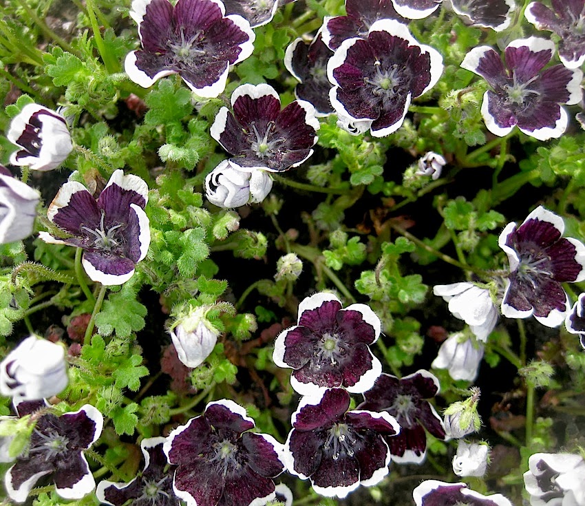 Семена немофилы обыкновенной (Nemophila menziesii) Пенни блек, высаженные в апреле, дадут вам цветущий с июня по сентябрь удивительный по красоте экзотичный коврик. Все дело в необычной окраске цветков этого сорта — лепестки имеют почти черный цвет и белую кайму по краям. Цветы одиночные, мелкие, около 3 сантиметров в диаметре. Листья удлиненные, перистые. Стебли стелющиеся, до 15 сантиметров высотой. Чтобы получить плотную полянку цветов и зелени, семена следует высаживать на расстоянии 10-20 сантиметров друг от друга. Немофила предпочитает полутень и влажный грунт. Выигрышно смотрится в рабатках, бордюрах, горшечных композициях.
