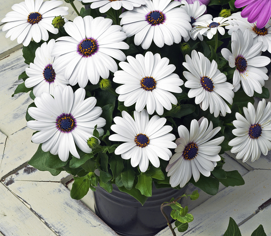 Остеоспермум Akila White Purple Eye - это волшебное растение, которое привнесет неповторимую атмосферу в ваш сад. Его стебель устойчивый и прочный, достигает высоты до 40-50 см, что делает его идеальным для миксбордеров. Листья остеоспермума имеют уникальную форму и яркую зеленую окраску, что придает растению особый шарм.