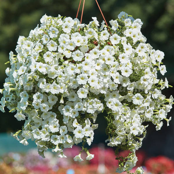 Петуния ампельная F1 White Velvet - это воплощение нежности и изысканности в вашем саду. Ее стебель тонкий и гибкий, позволяющий растению плавно обвивать подвесные горшки или цветочные клумбы. Сорт White Velvet поражает своей белоснежной окраской цветков, диаметр которых достигает до 5 см. Время цветения этой петунии - с мая по июль, радуя вас своими нежными бутонами.