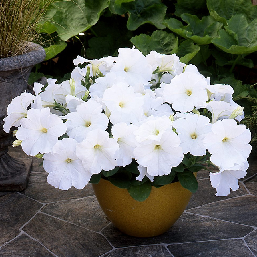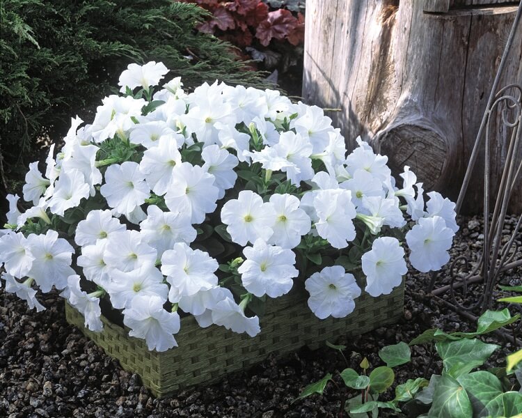 Петуния гибридная трилоджи вайт - это изысканное растение с белоснежными цветками, которые будто олицетворяют чистоту и нежность. Ее стебель прочный, а размеры компактные, достигая высоты от 15 до 25 см. Листья петунии темно-зеленые, создавая красивый контраст с яркими цветами. Это растение любит свет и может процветать как на солнце, так и в полутени.