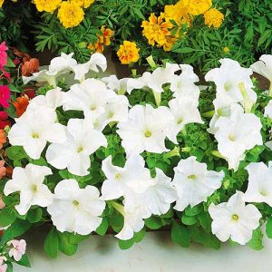 Петуния каскадная Рэмблин Вайт обладает белыми цветами, которые расцветают в мае, июне и июле, принося радость и свежесть в ваше пространство. Это растение предпочитает солнечные места и плодородные почвы, поэтому выберите для него яркое место под открытым небом.