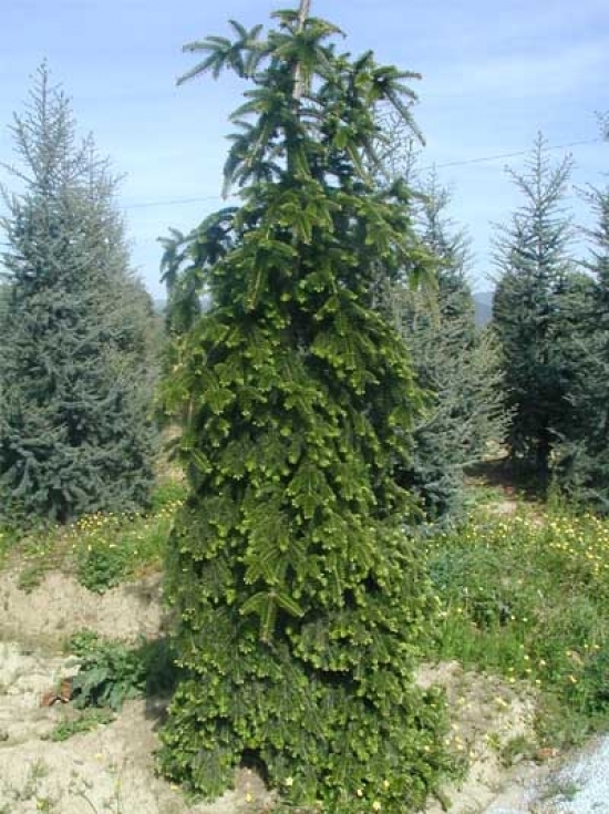Саженцы Пихты нордмана Пендула (Pendula) – дерево пришедшее к нам из французского региона Нормандия. Зимой и летом её хвоя остаётся зелёной. Отличие этого вида в том, что он растёт быстрее, чем остальные представительницы пихт, особенно после 10 лет. Ствол может быть диаметром 2 метра, а высота 50 метров. Пушистая крона в форме конуса эффектно выглядит, диаметр этой красоты может составлять до 10 метров.