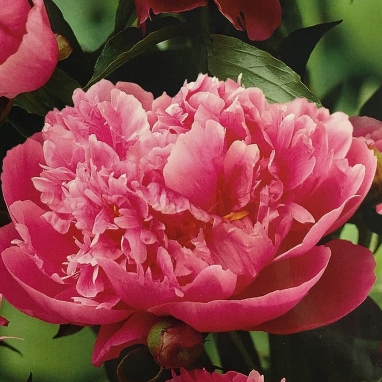 - изящной формы бутоны. Семена пиона молочноцветкового Дэйдрим не сохраняют сортовые качества, поэтому размножение следует проводить вегетативно. Внешние лепестки корончатого цветка расположены в несколько рядов и имеют яркий малиновый оттенок. Сердцевина состоит из резных кремовых лепестков с мазками розового. Зацветает довольно поздно.