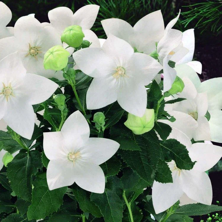 Платикодон Поп Стар Вайт - это волшебное растение, способное преобразить ваш сад в настоящий райский уголок. Его изящные белые цветы напоминают звезды, которые сверкают на небесах. Высота этого растения достигает 18 см, что делает его идеальным выбором для групповых посадок. Листья Платикодона Поп Стар Вайт имеют форму сердца, создавая неповторимый вид в любое время года.