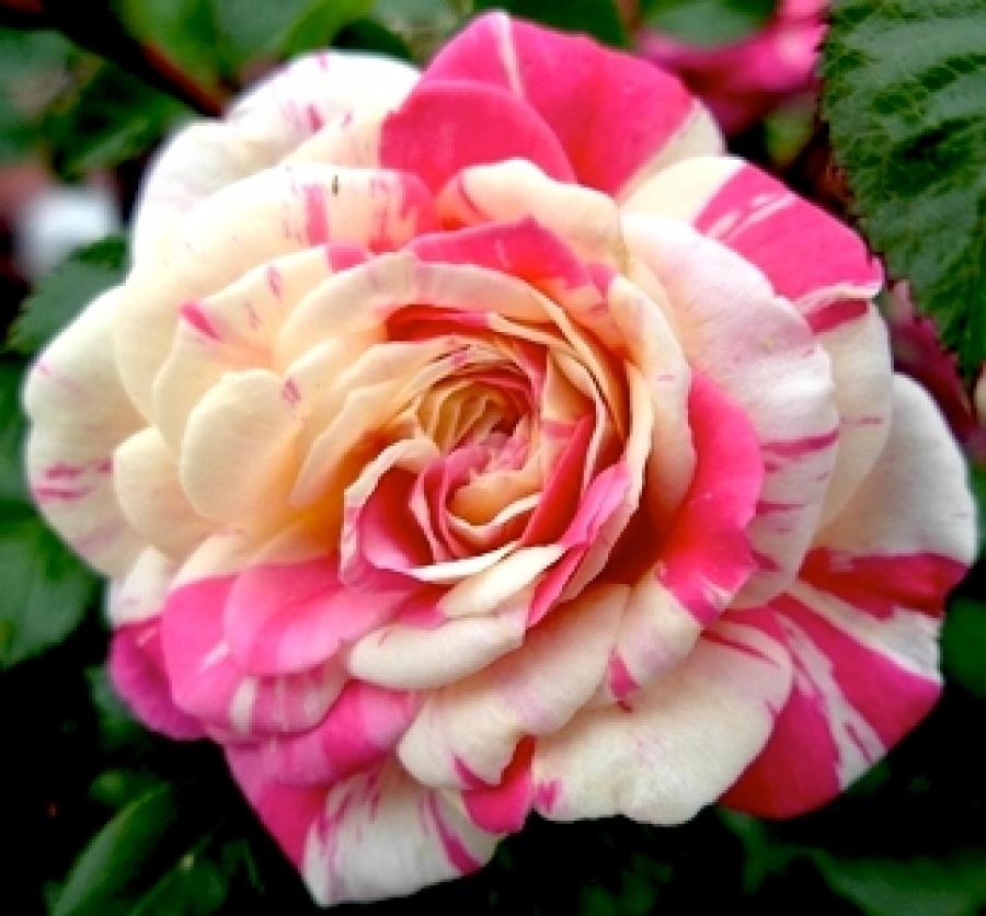 Саженцы розы Фиеста (Fiesta) ценят как профессиональные садоводы, так и новички в этом деле. Сорт отличается оригинальностью и необычностью. Вы просто не сможете не обратить внимание на полосатые, жёлто-розовые, крупные, махровые цветки, которые начинают появляться на стеблях уже в начале июня. Крупномер Фиеста отличается такими достоинствами: