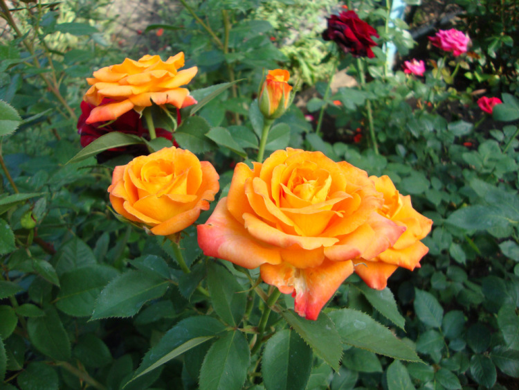 Саженцы розы чайно-гибридной Миракл (Miracle) относятся к тем сортам, которые будут радовать вас прекрасным продолжительным цветением и в жару, и в дождь. Высота кустов – 100 сантиметров. Диаметр цветков 8-10 сантиметров. Лепестки имеют ярко-оранжевый цвет с красноватым оттенком по краям. Сорт привлекает все больше любителей роз своим продолжительным и непрерывным цветением, которое длится на протяжении всего сезона. Количество лепестков в цветке небольшое, оно не превышает 30, но это компенсируется их необычной формой. Этот сорт имеет высокую устойчивость к заболеваниям и морозам. Цветки обладают нежным, но ярко выраженным ароматом. В срезке они сохраняют свежесть до двух недель.