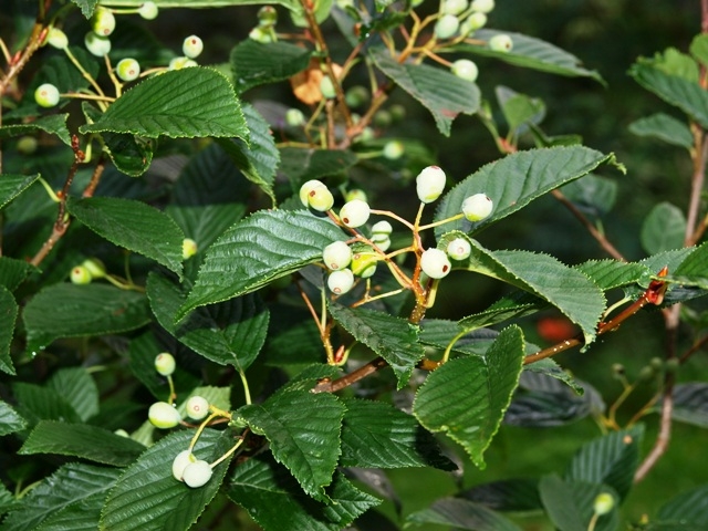 Этот вид рябины имеет красивые цветочки, которые появляются на дереве в мае. Кристально белые лепестки притягивают взгляд, хорошо контрастируют с основным тоном кроны. Плоды хоть и невкусные, но выглядят броско. Украшают сад на протяжении долгого времени.