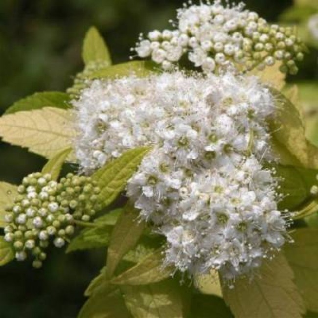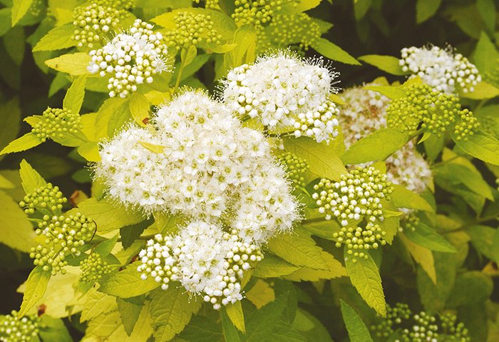 Саженцы Спиреи японской Вайт Голд (White Gold, Spiraea japonica) – листовидный кустарник высотой около 90 сантиметров. Растение уникально своей раскидистой округлой кроной, которая достигает 100 сантиметров в ширину. Сорт Вайт Голд привлекает к себе внимание не только карликовостью, но и уникальной листвой. Спирея обладает заостренно-овальными листьями желтого цвета, которые в осенние месяцы меняют свой окрас на оранжево—бронзовый. Интересен сорт тем, что в тени листья меняют свой цвет на зеленый. Спирея Вайт Голд не прихотлива к почве, но для пышного цветения растению требуется слегка влажный плодородный грунт. Это морозоустойчивый и светолюбивый кустарник.