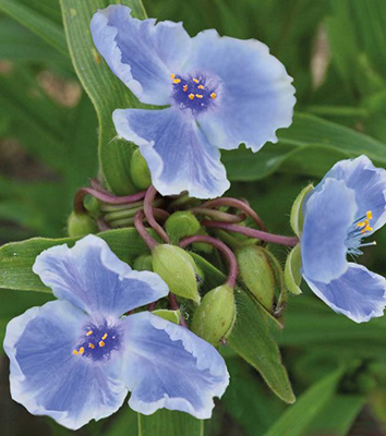 Традесканция Андерсона Эвридика - это удивительное растение с нежно-голубыми цветками, которые радуют глаз в течение мая, июня, июля и августа. Ее зеленая листва создает прекрасный контраст с яркими цветами, делая этот сорт идеальным для газонов, групповых посадок, каменистых горок и других мест. Высота растения достигает 35 см, что делает его компактным и удобным для различных ландшафтных дизайнов.
